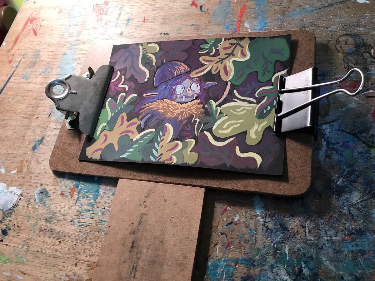 A prompt I missed was goblin. So here is my goblin. #mabsdrawlloweenclub #mabsdrawlloweenclub2020 #goblin #emilyzelaskoart #fabtasyart #spookyart #woods #fantasypaintimg #inktober #paintober #mythart