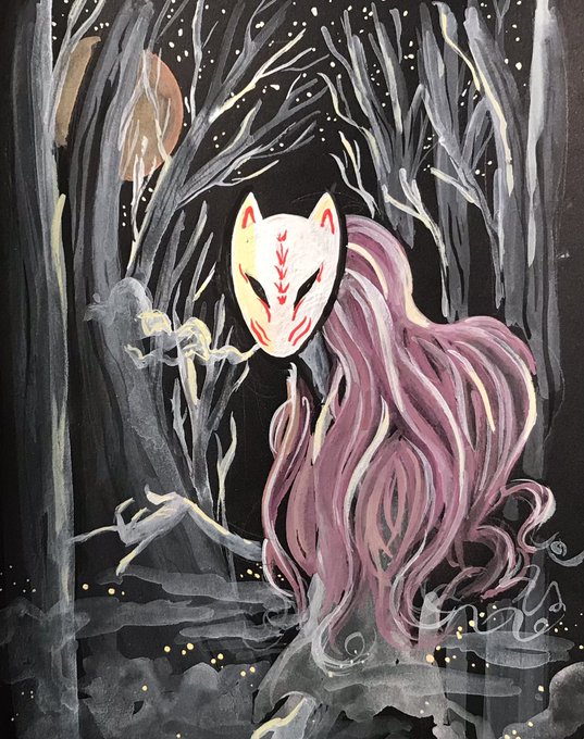 Yesterday’s prompt was mask. Is it a mask? I did paint this yesterday! But then fell asleep. #inktober #paintober #mask #mabsdrawlloween #mabsdrawlloween2020 #fox #fixmask #yokai #emilyzelaskoart