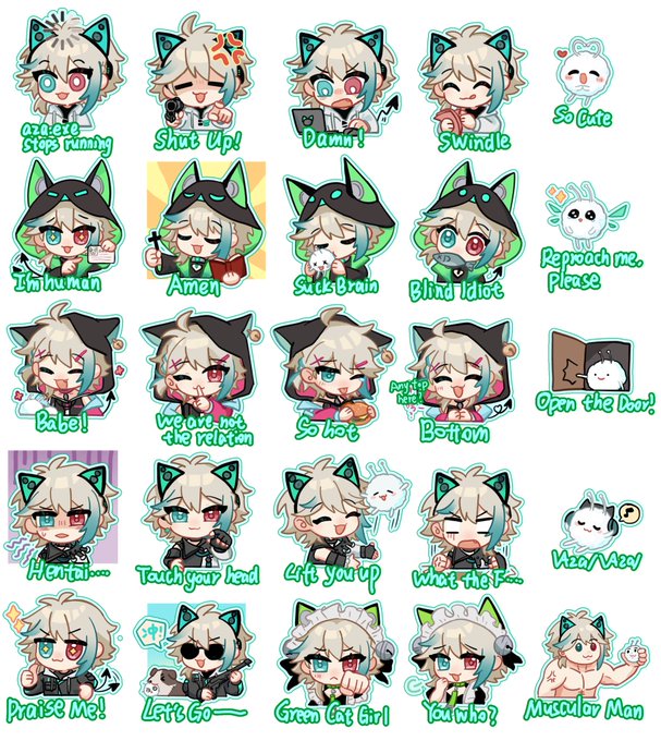 画了一些没有实装(也不太可能实装)的表情包,感觉大部分攻击性(无论是主播还是对小毛线)都很强,非常适合用来阴阳怪气别人 不去看aza的直播去画aza究竟是纯爱还是ntr呢 #azart #阿萨Aza