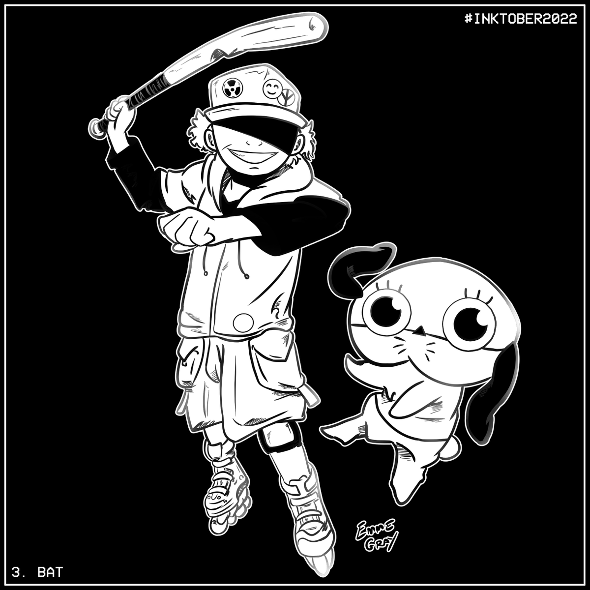 Inktober 2022 - 3 BAT ⚾ Shonen bat from Paranoia Agent and of course the little Maromi 🌸 I need to thanks again my dear friend Gianfo to introduce me this awesome serie ♥ ✏️ Don't forget to: ❤️ like 💬 comments 🛩share grazie╰(⸝⸝⸝´꒳`⸝⸝⸝)╯💕 #inktober2022