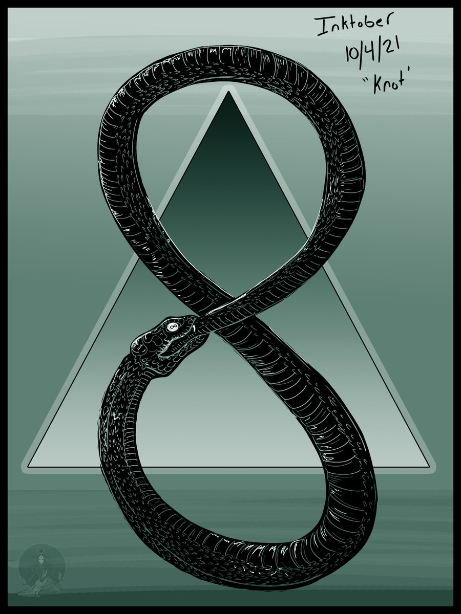 Went a little abstract on this one, but I just did my own interpretation of an ouroboros. But hey, at least I got it done the day of the prompt! #inktober2021 #inktoberday4 #inktoberday4knot