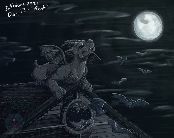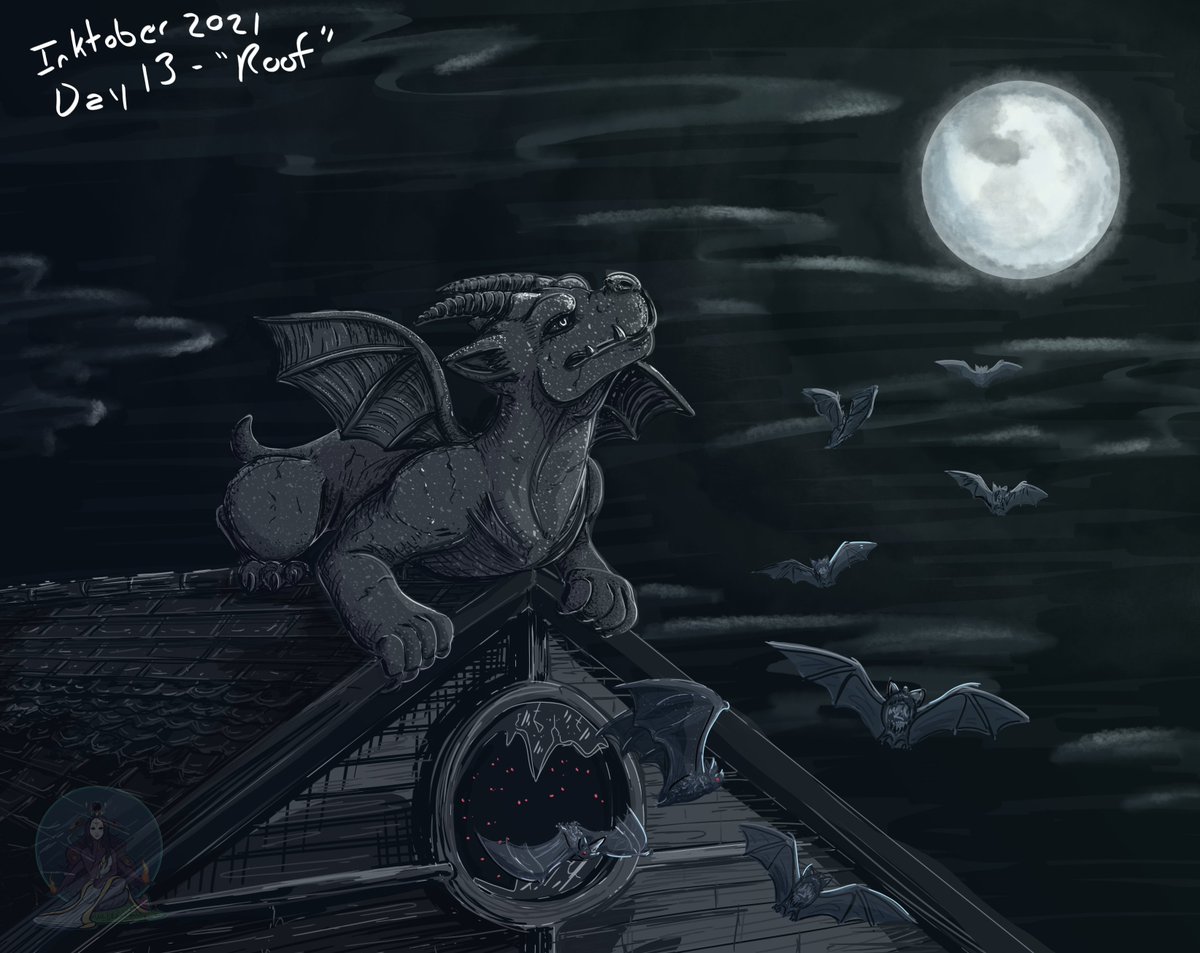 Inktober 2021: Day 13 - “Roof” A little late on this BUT it is done....also there was no way I was doing JUST a roof. (which is why it took so long.....👉👈) #inktober #inktober2021