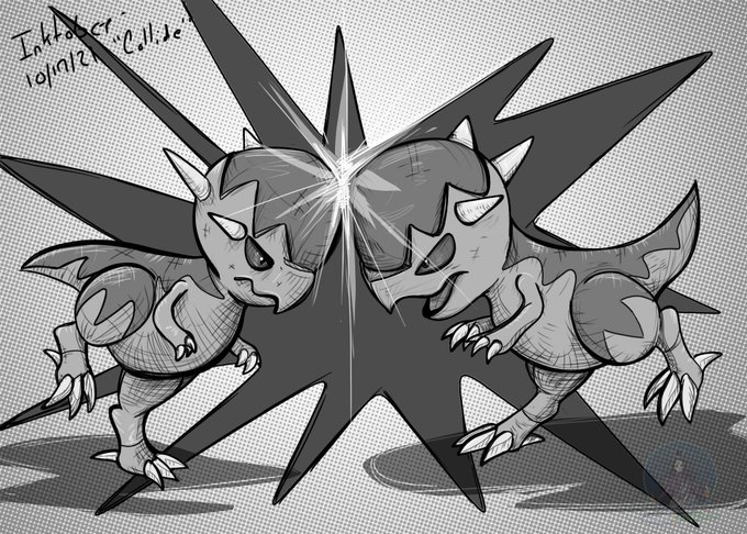 Inktober 2021: Day 17 - “Collide” Enjoy this purposeful collision of Cranidos!...Pokémon Brilliant Diamond's release isn't too far away, so I wonder how many of you want Cranidos on your team? #inktober #inktober2021 #inktober2021day17 #Pokemon