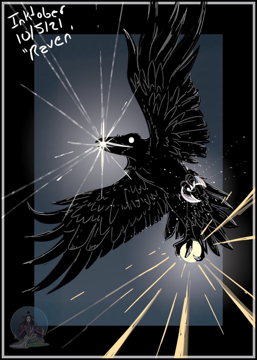 Inktober Day 5 - “Raven” Probably some of my favorite myths are how Raven stole the Sun (and sometimes the moon and stars as well) and gave it to the people. I wanted to incorporate the idea into today’s Inktober. #inktober2021 #inktober2021day5 #inktober #raven