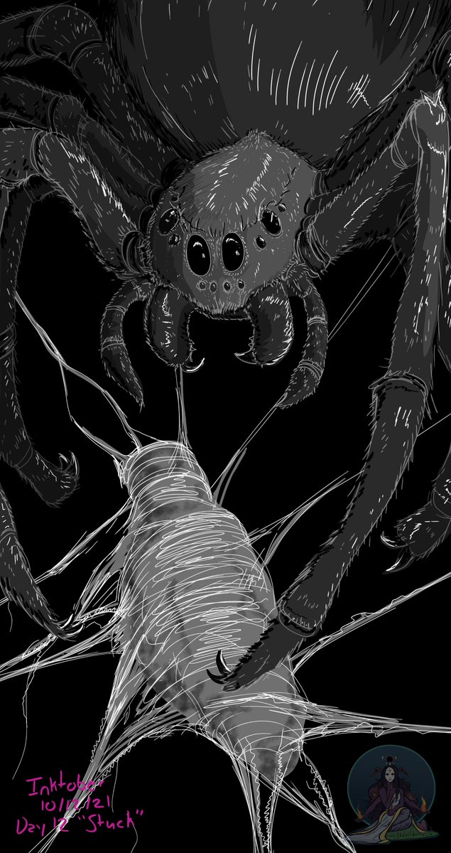 Inktober 2021: Day 12 - "Stuck" Seems you find yourself in a sticky situation..... #Inktober #inktober2021 Also thanks to my favorite arachnophobe @cup_kate07 for the suggestion. 😂