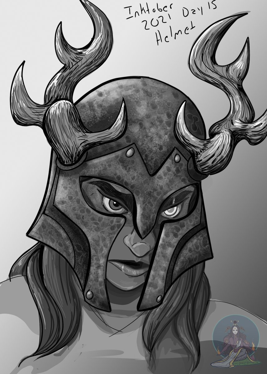 Inktober 2021: Day 15 - “Helmet” A little late but its FINALLY DONE!!!🤩 Drew one of my Skyrim Characters, Saga Snowsong in her Ancient Nord Helmet. #inktober #inktober2021 #Skyrim #elderscrolls #fanart