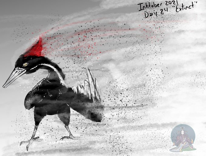 Inktober 2021: Day 24 - “Extinct” RIP Ivory-Billed Woodpecker.....😢 #Inktober #inktober2021day24 #inktober2021 *Due to the recent art theft; feel free to retweet, but please no reposts.