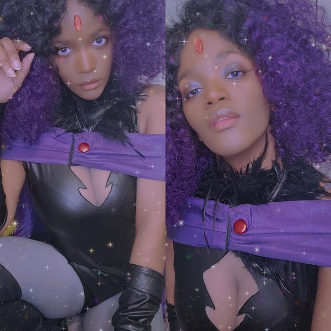 Was one of your first fictional boo things Raven, too, or are you weird? 💜 Cosplay: Miccostumes Wig: Amazon Contacts: Uniqso #cosplay #28DaysofBlackCosplay #twittercosplay #raven #TeenTitans #blackcosplayer #cosplayersunder1k