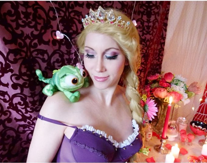 rapunzel : Said Pascal, do you think Flynn will come and like my surprise ? PASCAL: ............. #Rapunzel #Disney #cosplay #ValentinesDay #caméleon #chameleon #raiponce
