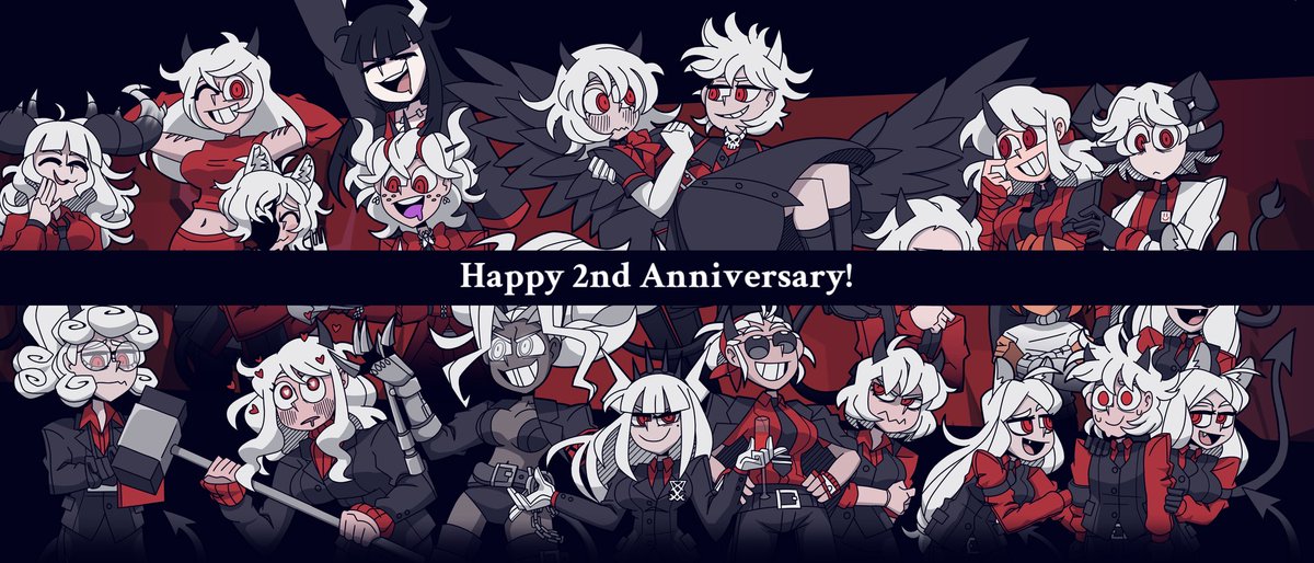 Happy (very VERY late) 2nd Anniversary. It's finally done, lads. Been quite a journey that I have been in this awesome community. Lots of demon girls and awesome artists. You guys are real ones. Here's to more demon girls. #Helltaker #Helltakerfanart #OC