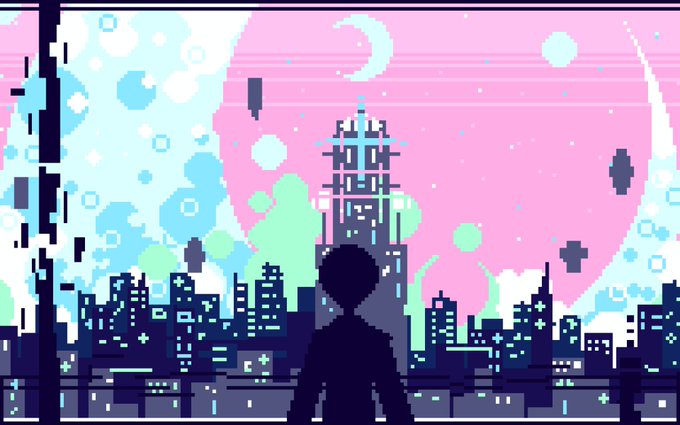 #pixel #pixelart #ドット絵 #dotpict #art #skyline cotton balls on phone I read the color scheme of one of my pictures and I did a new aspect ratio