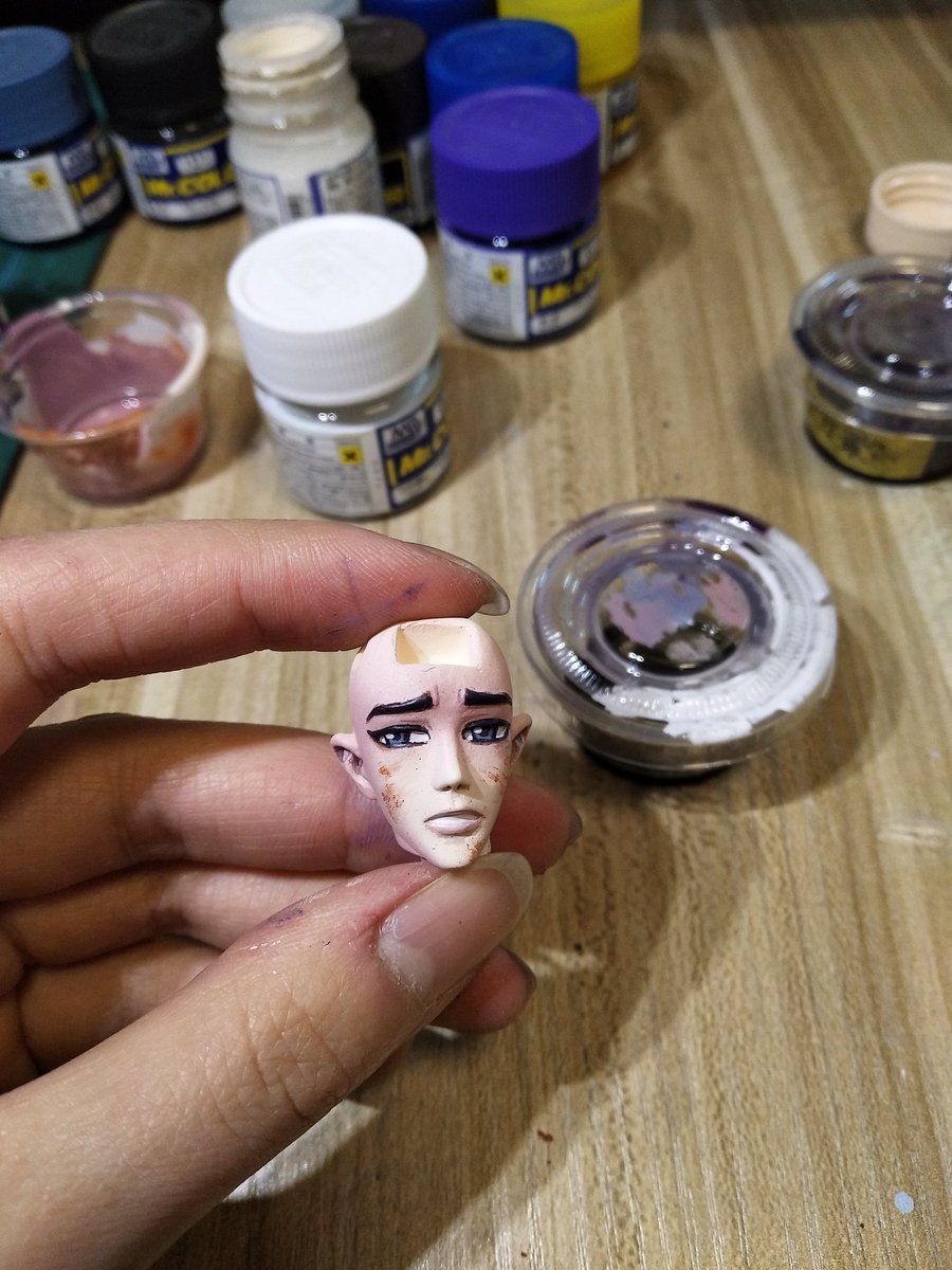 画脸的颜色深了点看起来手抖有点糙下次调浅点好了,直接用亮色假装是发光好像还不错?这才涂了一只剩下的得涂到什么时候去..............要命了不能拖延了
