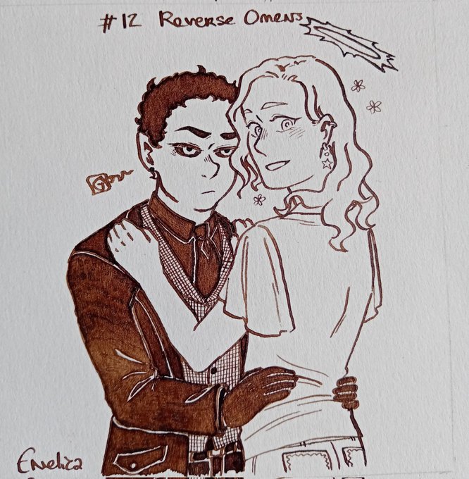 Day 13 : Friends / Reunion Not exactly the prompt but I'm not really inspired today 😔 #ineffableinktober by @koko_iep #enelicart #goodomens #inktober2022