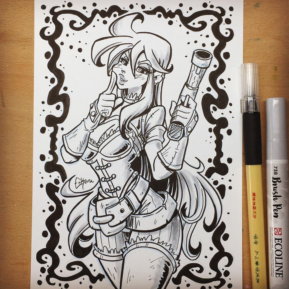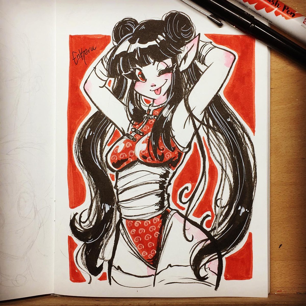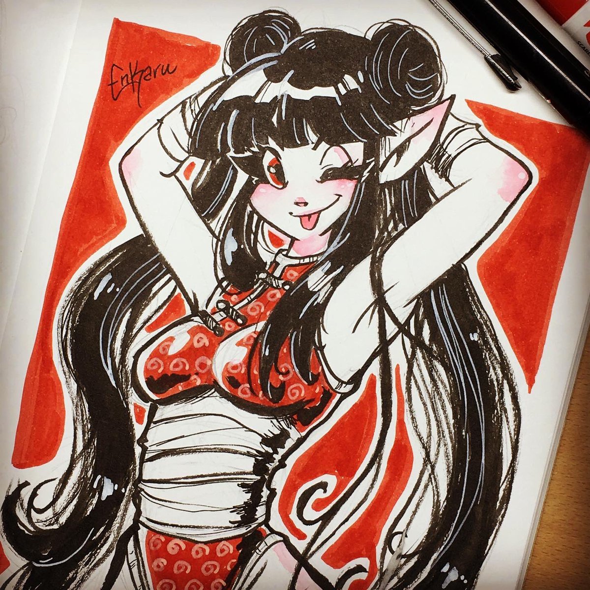 Oriental elf. Tools: Pentel brush pen and Ecoline markers. #inktober #inktober2021 #lineart #traditionalart #originalcharacter #characterdesign