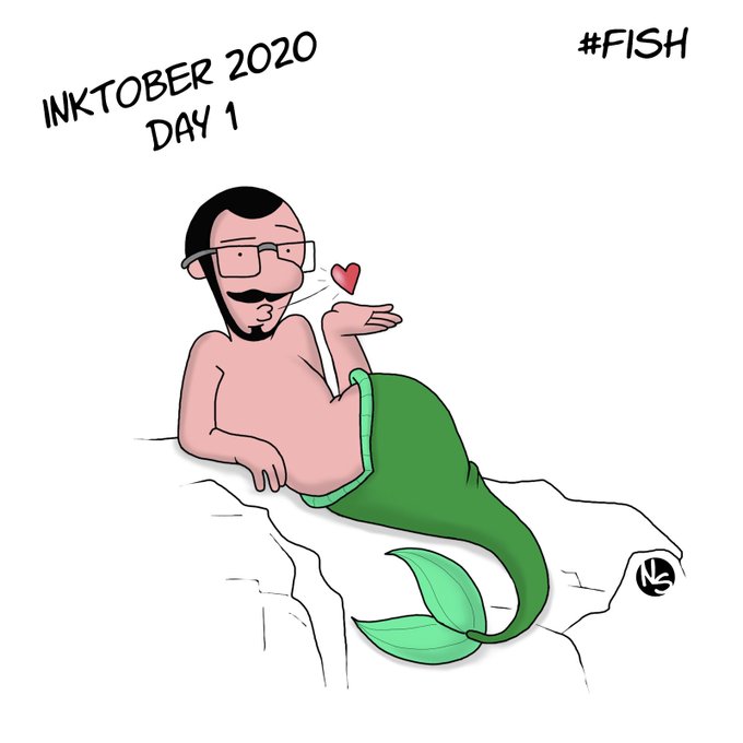 Alla fine ci sono ricascato... Però niente esperimenti strani, vi beccherete un'illustrazione al giorno nuda (non sempre non fateci la bocca) e cruda per tutto il mese di ottobre! #inktober2020 day 1: fish @inktober #inktober #Inktoberitalia #day1 #fish #sirena #kiss #mermaid