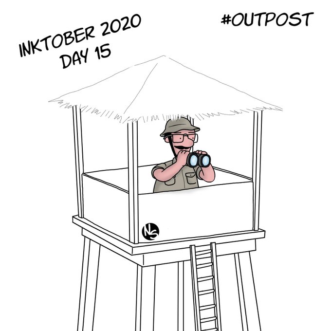 #inktober2020 day 15: outpost @inktober #inktober #Inktoberitalia #day15 #outpost #avamposto #vedetta #torrediguardia #binoculars #watching #enneesse #vignette