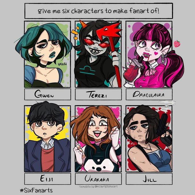 Finished!! Gimme characters to draw fanart of, preferably women💕💕~~~~~~ #sixfanarts #sixfanartschallenge #sixfanart #homestuck #totaldramaisland #monsterhigh #bananafish #bokunoheroacademia #residentevil3