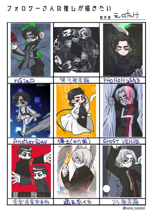 11 58 #今月描いた絵を晒そう 生誕祭はもちろん、お題箱絵が多かった4月ですた。 23/04/29 12:43