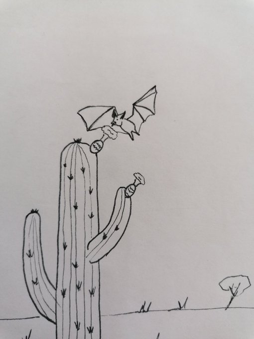 Día 3: #Bat Los murciélagos tambien son polinizadores, hay vampiros, frugívoros, polinívoros, insectívoros, pescadores. P.S. el termino murciegalo también es valido #Inktober2022