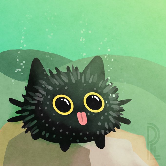 #Purrmay 3- Blep There are plenty of stark black creatures I could've slapped this iconic and lovable face on, but I'm saving them for the other prompts in the list. For now, a sea urchin should suffice. A sea Purr-chin. #mermay2022