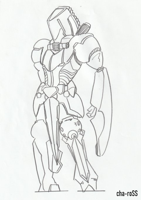 本日の投稿は、オリジナルのアーマーデザインです! ちょっと宇宙人感・エイリアン感が出るようにシルエットを意識しました! <cha-ross> #パワードスーツ #オリメカ #イラスト #ラクガキ
