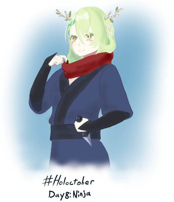 #HOLOctober day 8, Ninja Fauna. Didn't have any brilliant creative ideas so I tried a different coloring/lineart style instead. That was a mistake, took me forever. Is it still day 8 somewhere out there? #FineFaunart