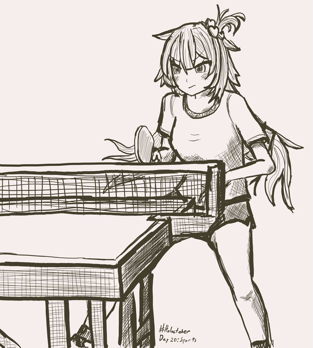 #HOLOctober day 20, Ping Pong is a Sport yes? Had trouble deciding what hairstyle to go with but went with the classic Haato look. #はあとart
