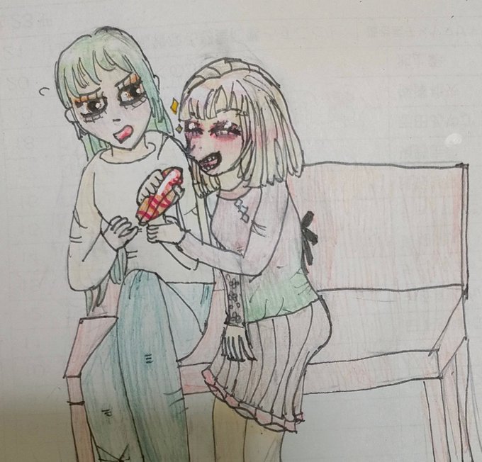「美味しそー✨」「またつまみ食いする気?!」 #イラスト #絵 #絵描きさんと繫がりたい #絵描きさんと繋がたい #アナログ #みんなで楽しむTwitter展覧会 #百合好きさんと繋がりたい