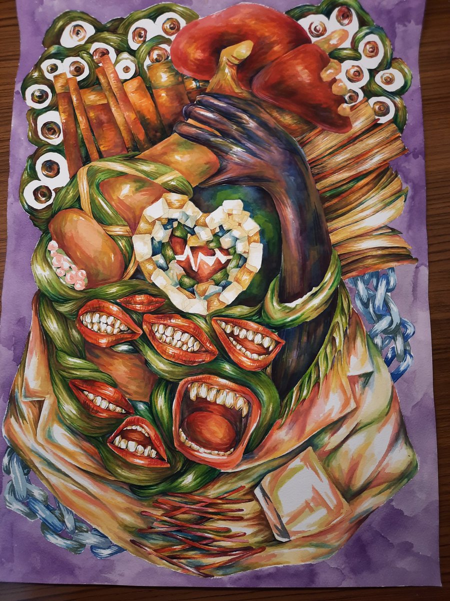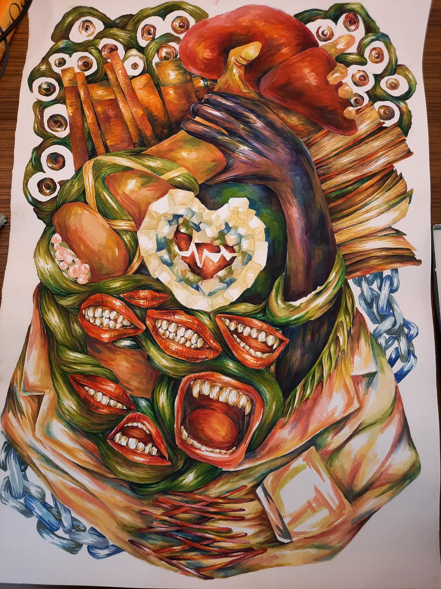 思考 人類 形狀 需要進食,需要睡眠 依舊是頭醜陋的獸 成就解鎖,活著。 不是想要喝機油 也不是想嗶波嗶波 沒有方向 沒有夢想 於是撕裂了自己的靈魂 失去知覺,失去情感。 放鬆 放鬆 放鬆 自由自在,飄 成為自己所想像的形狀。 #MankindShape #水彩 #插畫 #Watercolor #イラスト #illustration