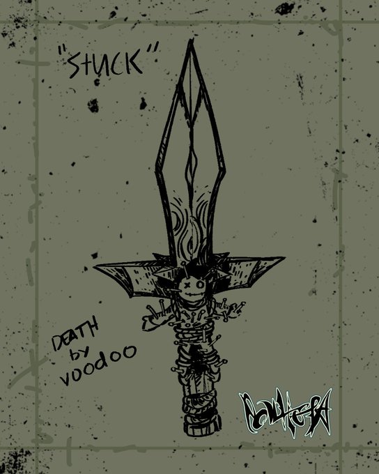 Inktober Day 12 - Stuck Stuck,Death by Voodoo #inktober #inktober2021 #inktoberday12 #inktoberprompts #artph #art #artist #artistoninstagram #artistsupport #digitaldrawing #digitalart #dagger #voodoo #knife #voodoodoll #ArtistOnTwitter