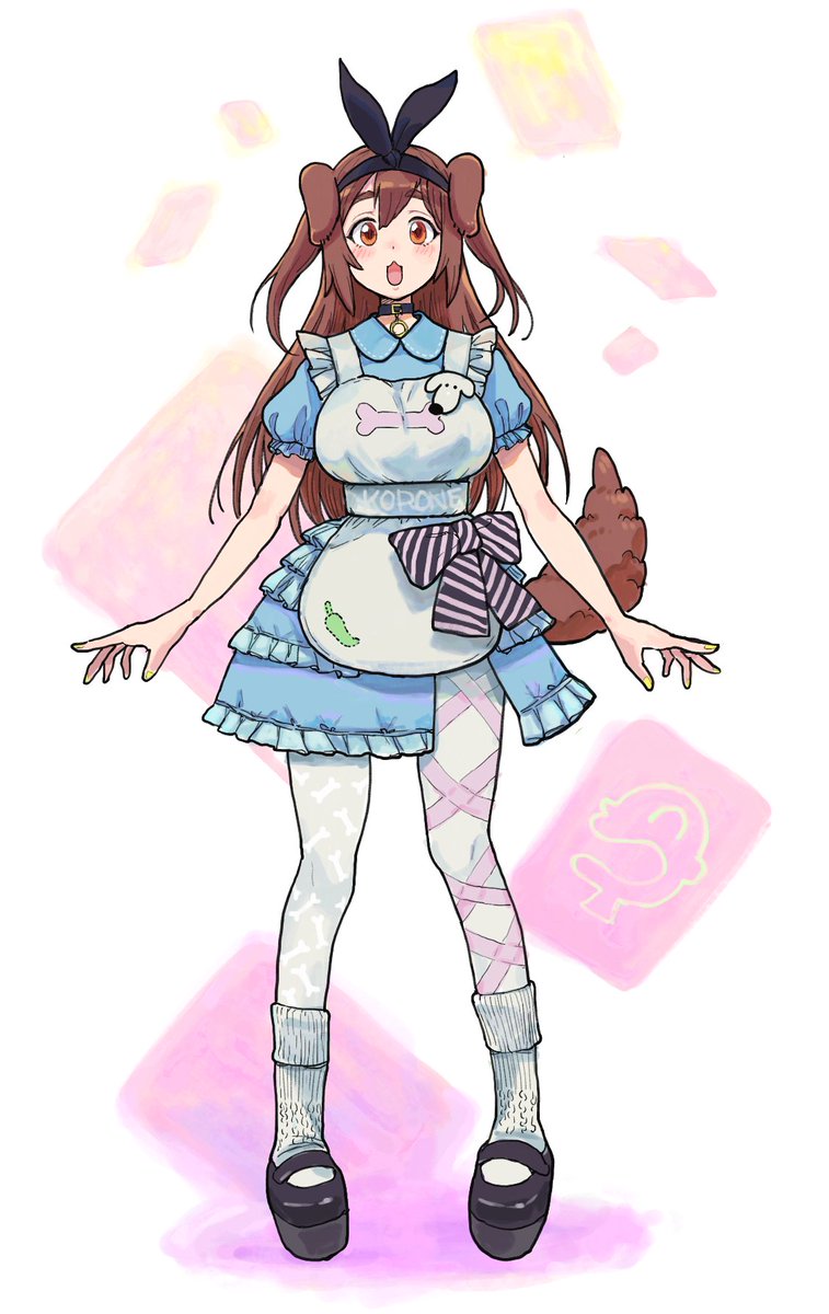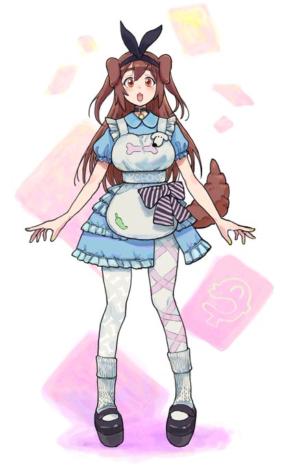 きっとエプロンドレスっぽい衣装に違いない 青系の服だったら絶対可愛いよ! しかしあのシルエット…耳はどうなっているのだろうか…? その謎を解明すべく、我々はアマゾンの奥地へ向かった…! #戌神ころね新衣装予想図 #できたてころね