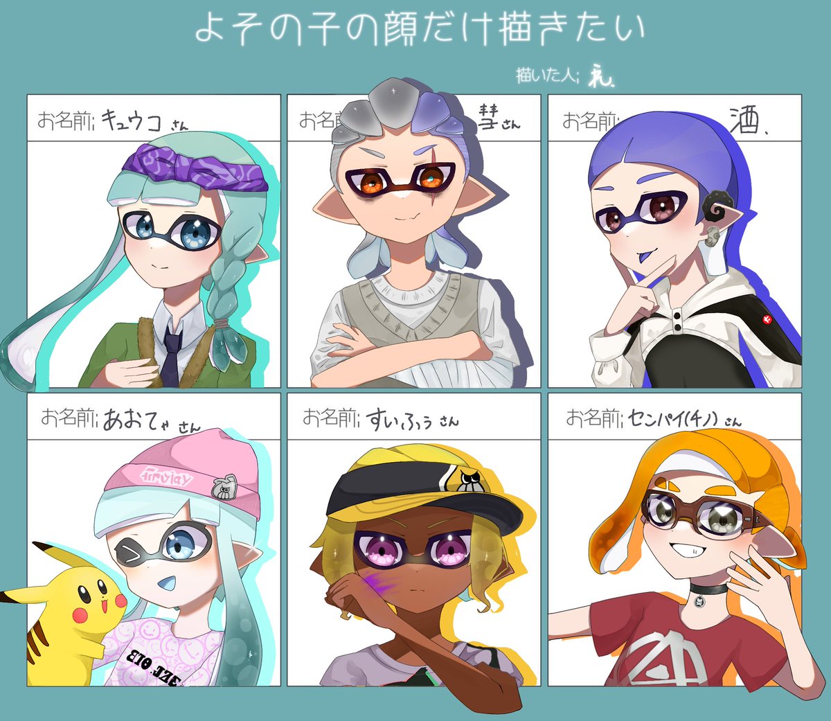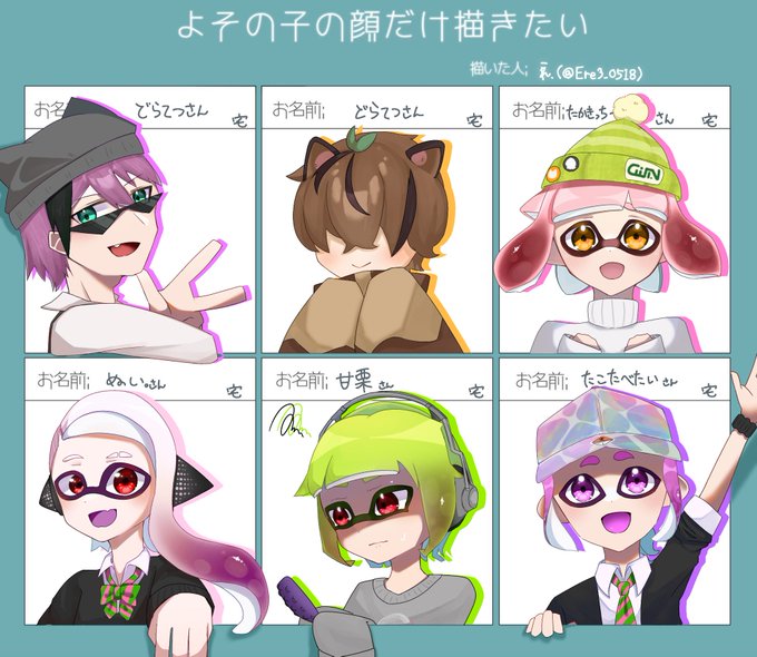 #よその子の顔だけ描きたい 前半6キャラ描き終わりました〜!! みんなキャラデザ良すぎてはちゃめちゃに時間かかってしまった...Ꙭ) (2枚目は後ろの色無しバージョンです🙏) 後半6キャラもキャラデザ良すぎるから描くのが楽しみ...😎