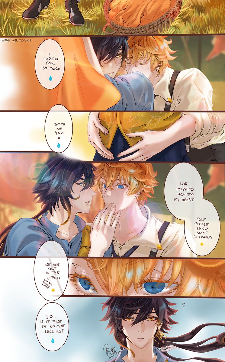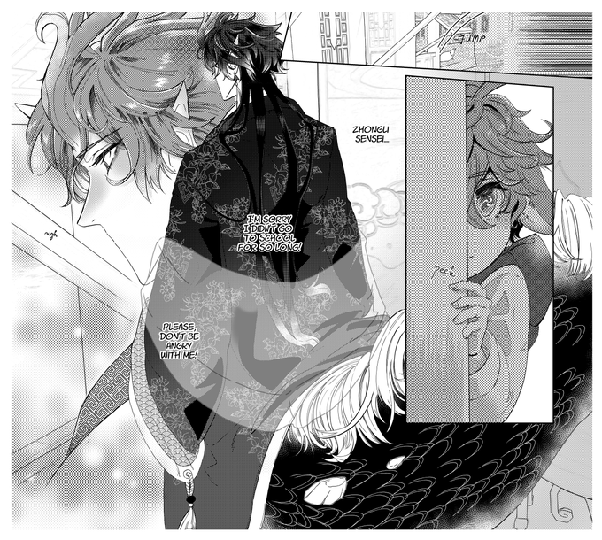 My preview for #tartalilanternrite2023, a Top Tartaglia x Bottom Zhongli Lantern Rite themed free zine! 😍😍 I made a collab-story with @CarmensCaramel !!!! 🫂 Thank you all for the opportunity! 🙇♀️ small student 🦊 Tt & teacher 🐉Zl #tartali #foxchilde #dragonzhongli