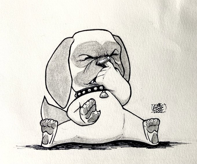 23. BOOGER 🍽 Shiho, digging in for a snack (Chiot [shee-ho] is french for young dog) __ #inktober2022 #drawings #artist #sketchbook #illustration #doglover