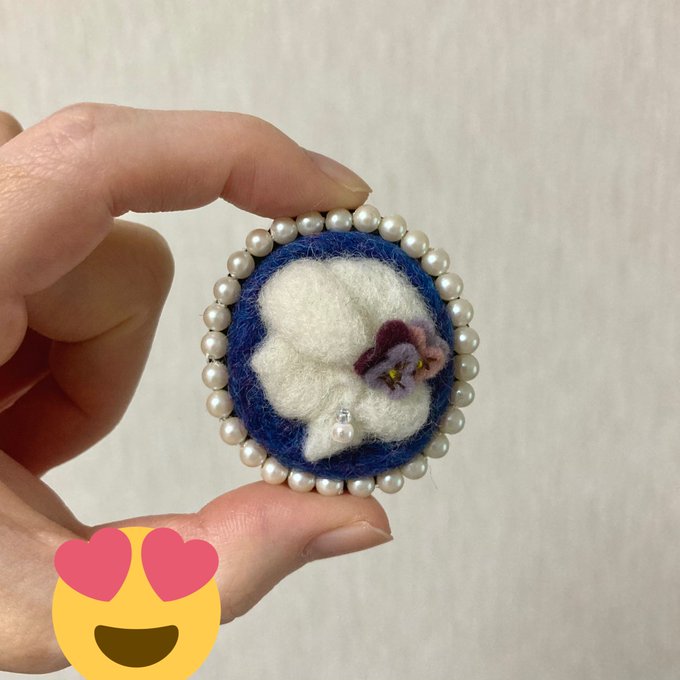 今夜も19時より #minne さんから選べるクーポンもらえます😄 この機会にぜひご覧下さいませ! ➡️minne.com/@08fc323 #羊毛フェルト #羊毛カメオ #羊毛フェルトブローチ #ブローチ #カメオ #ハンドメイド #ハンドメイド好きさんと繋がりたい #woolfelt #camee #パンジー #薔薇