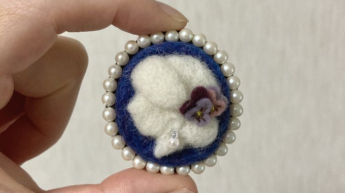 こうして出来上がりました😊💕 羊毛カメオブローチ ~パンジーの髪飾り~ #minne minne.com/items/23813317 #羊毛フェルト #羊毛カメオ #羊毛フェルトブローチ #ブローチ #カメオ #ハンドメイド #ハンドメイド好きさんと繋がりたい #woolfelt #制作過程 #camee #パンジー