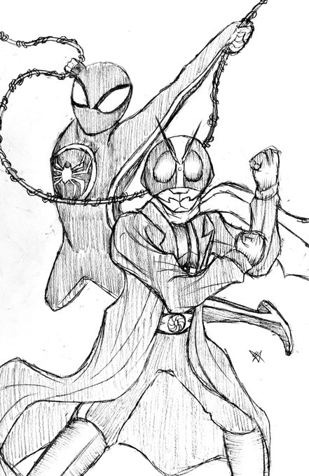 Spider-Man #2 x Kamen Rider #2 Sketch #WIP #rkgk #spiderman #SpiderManAcrossTheSpiderVerse #ShinKamenRider