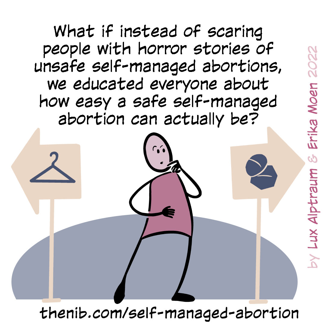 "When you say a self-managed abortion, people think about a coat hanger or a back-alley abortion. The reality is ... it's not like that anymore." -Abigail Aiken Excerpt from the comic explaining self-managed abortion by @LuxAlptraum and me for @thenib thenib.com/self-managed-a…