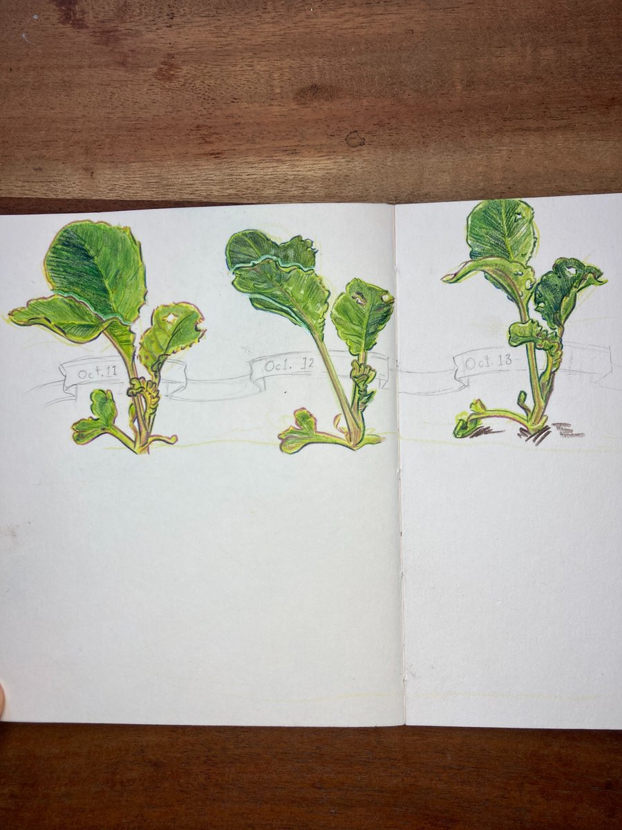 Drawing October 21's portrait was extra exciting because that's when I discovered the caterpillar who had been making a meal out of my broccoli the previous few days 🥦🐛 #broctober #inktober #inktober2022 #botanicalart