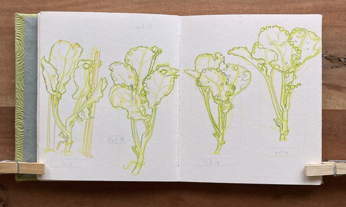 The under-drawings for my same broccoli from October 16-19. I'll finish 'em up proper later. #broctober #inktober #botanicalart