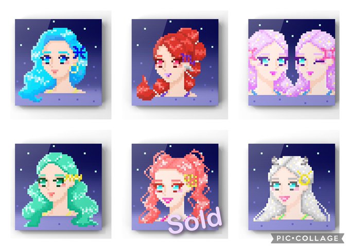 6人の星座のヴィーナス完成しました✨👏 まさか途中でお迎え頂けるなんて思ってなかったので嬉しいです🥹 引き続きがんばります💪 左上から♓️♏️♊️♒️♋️♉️ 双子座♊️意外はリスト済みです🍀 🔗opensea.io/collection/pix… #NFT #pixelart #Pixel #ピクセルイラスト #ピクセルアート #ドット絵 #NFT宣伝
