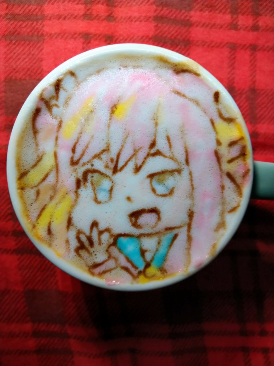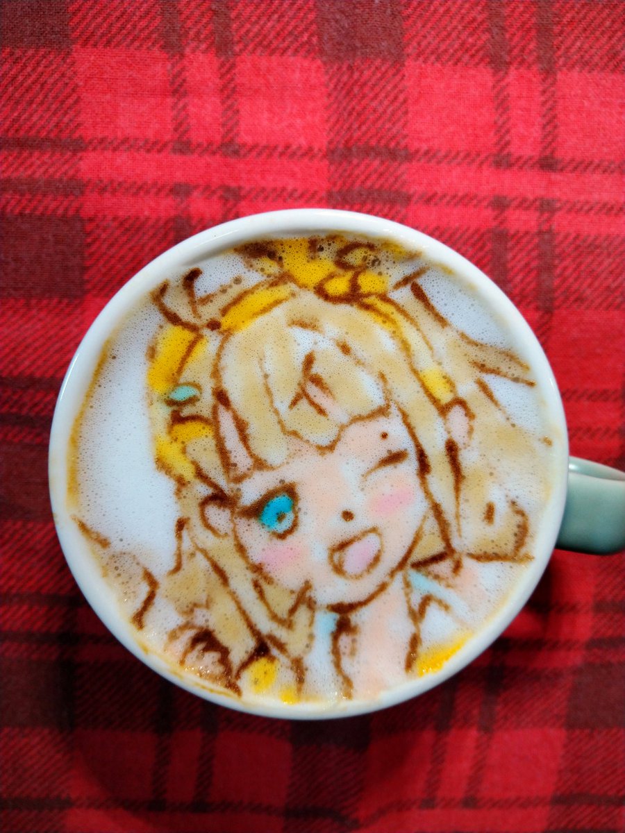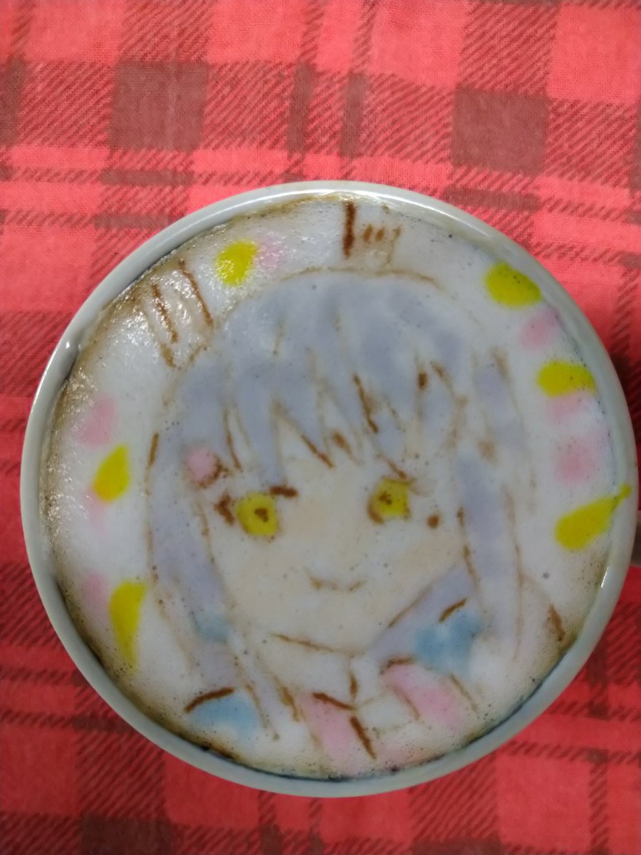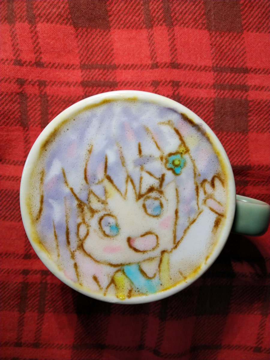 本日のラテアート、 お誕生日おめでとう、図月つくるちゃんで1杯。 ちょっと遅くなったけど、誕生日ライブよかったよー! #図月画工作 #図月つくる #ラテアート