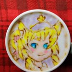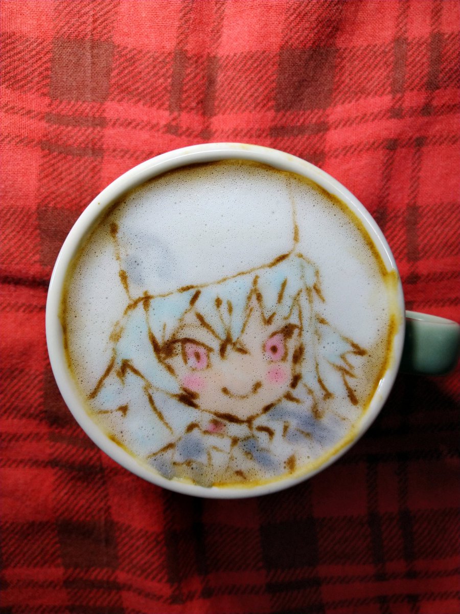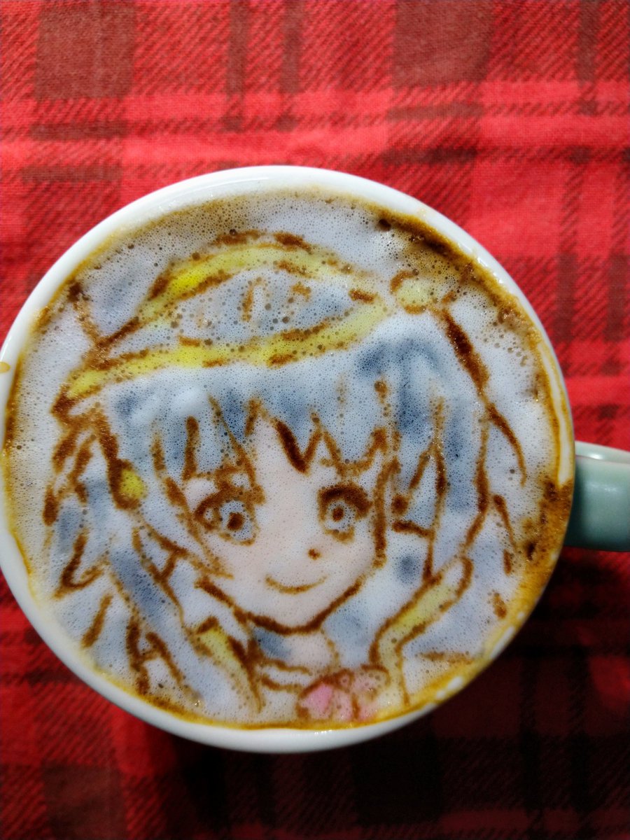 本日のラテアート、 図月つくるちゃんで1杯。 つくちゃん、電工2種の合格おめでとう! #図月つくる #図月画工作 #ラテアート