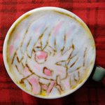 本日のラテアート、 ライヴラリの赤月ゆに様で1杯。 いつの日か活動再開するのをお待ちしてます。 #赤月ゆに #ゆにぴく #ラテアート