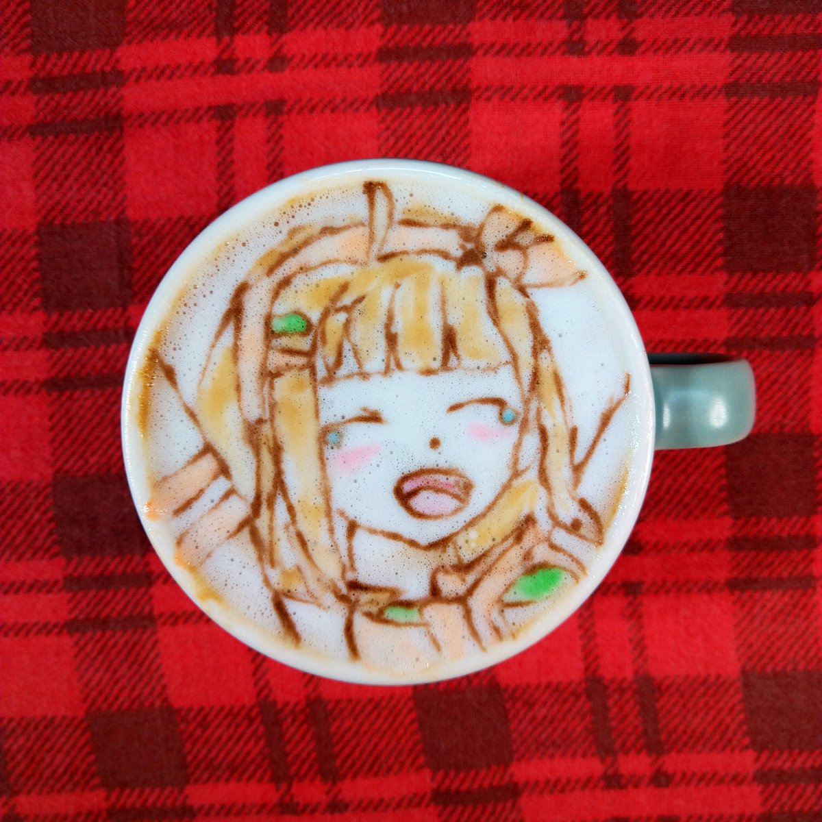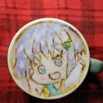 本日のラテアート、 バレンタインのつくちゃんで1杯。 照れ隠し溢れる特別ボイス可愛かったなぁ。 本編では紅茶だったけど、ベースドリンクは珈琲です。 #図月つくる #図月画工作 #ラテアート