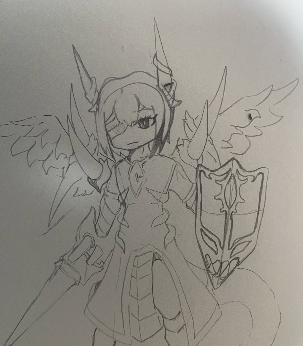 13日目ドラゴン少女(騎士装備) 武器が小さすぎた #アナログ絵 #イラスト #イラスト練習
