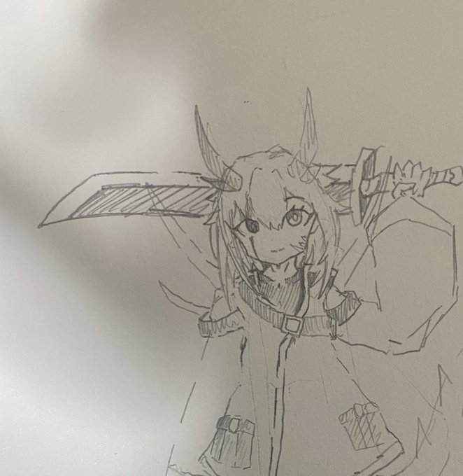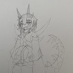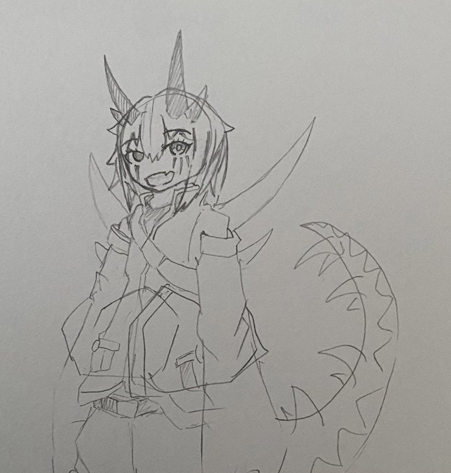 人を書いて八日目 昨日の反省を活かして書いたが体と服がおかしくなった 人外に合う服がわからん #アナログ絵 #イラスト #イラスト練習