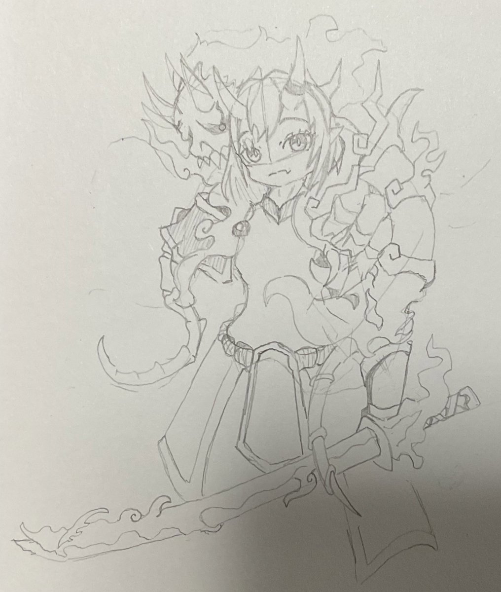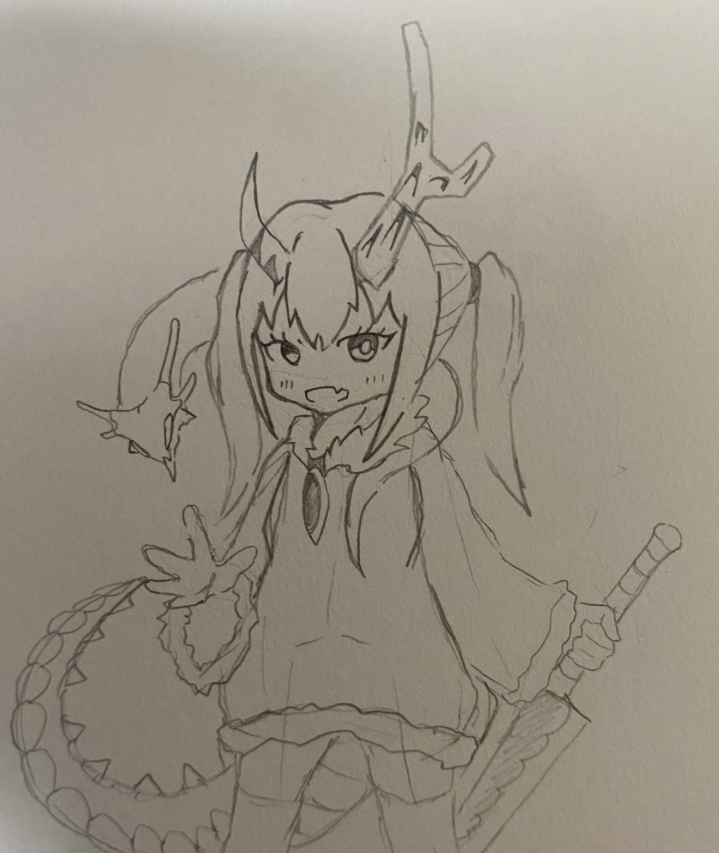 3 22 13日目ドラゴン少女(騎士装備) 武器が小さすぎた #アナログ絵 #イラスト #イラスト練習 23/04/05 17:57