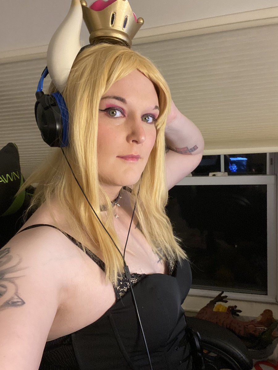 My #supercrown broke 😭 but I did a one-horned #Bowsette for a #Queerantine #cosplay event #TransIsBeautiful - just wanna get back to normal so I can put the Shell & boots 👢 back on 😔💖