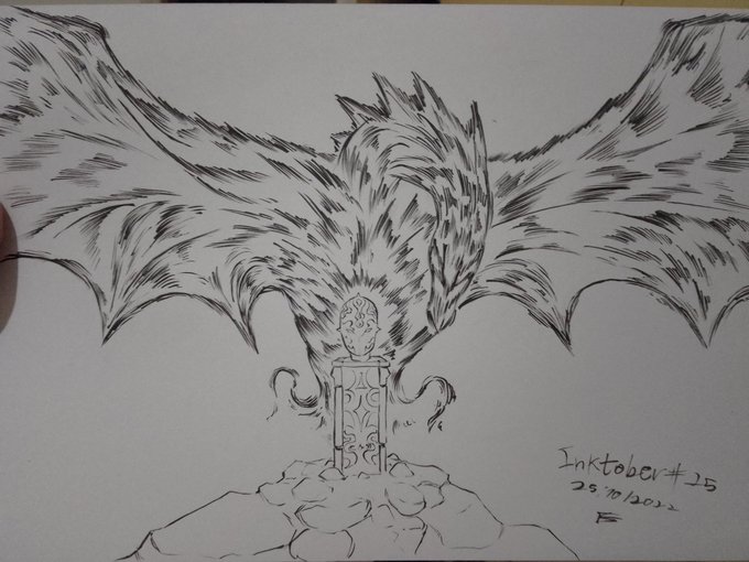 Um pouco frustrado hj mas inktober n pode faltar. Ia fazer as escamas mas ia dar mt trabalho e já tô com sono #Inktober #inktober2022 #inktober2022day27 #inktoberday27
